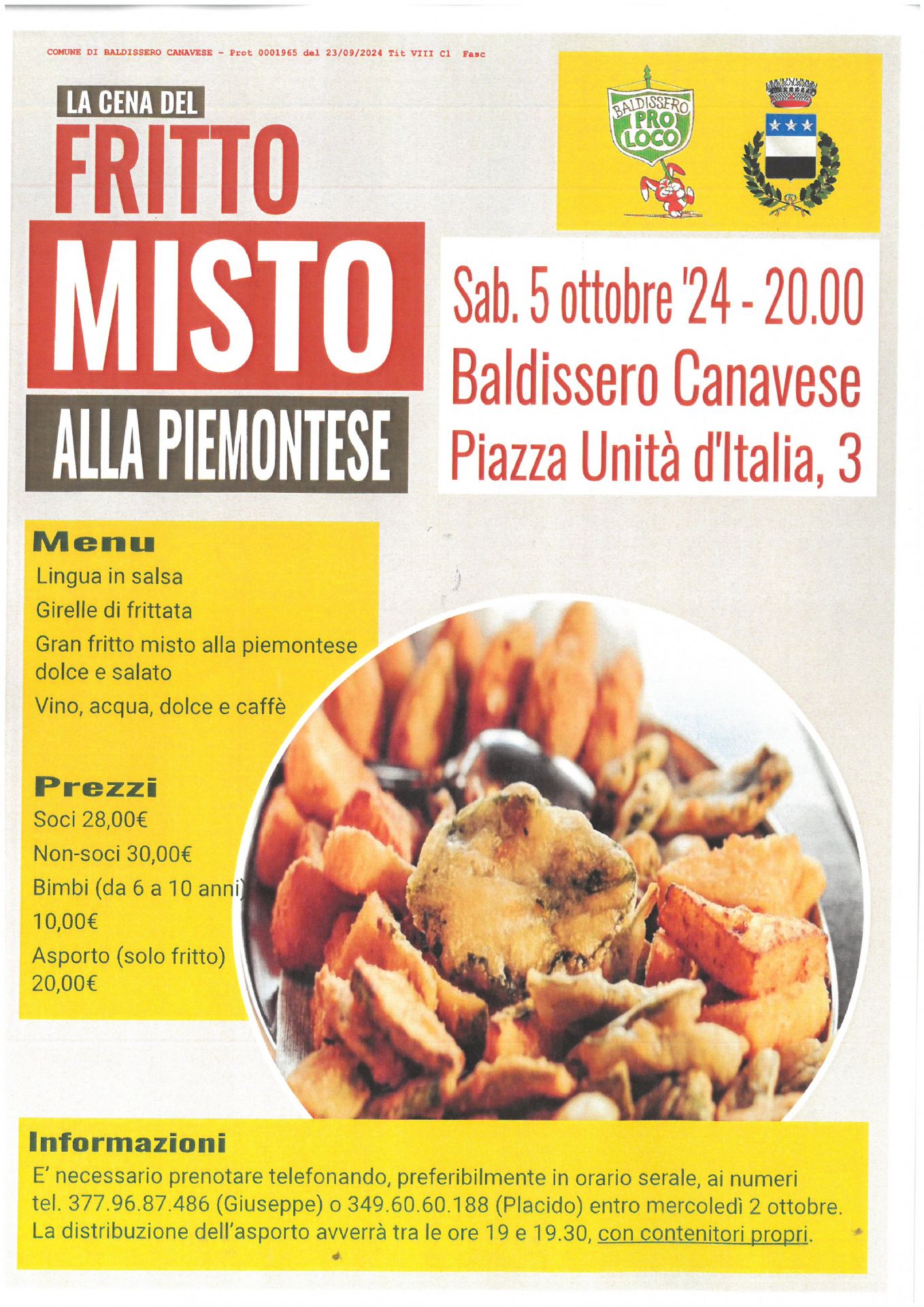 Asporto (solo fritto): 20,00 euro
