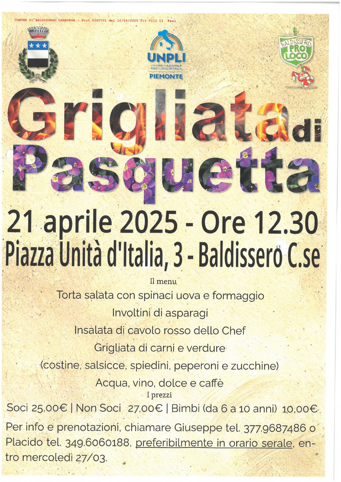 La Pro Loco di Baldissero Canavese organizza per Lunedì 21 aprile 2025 alle ore 12.30