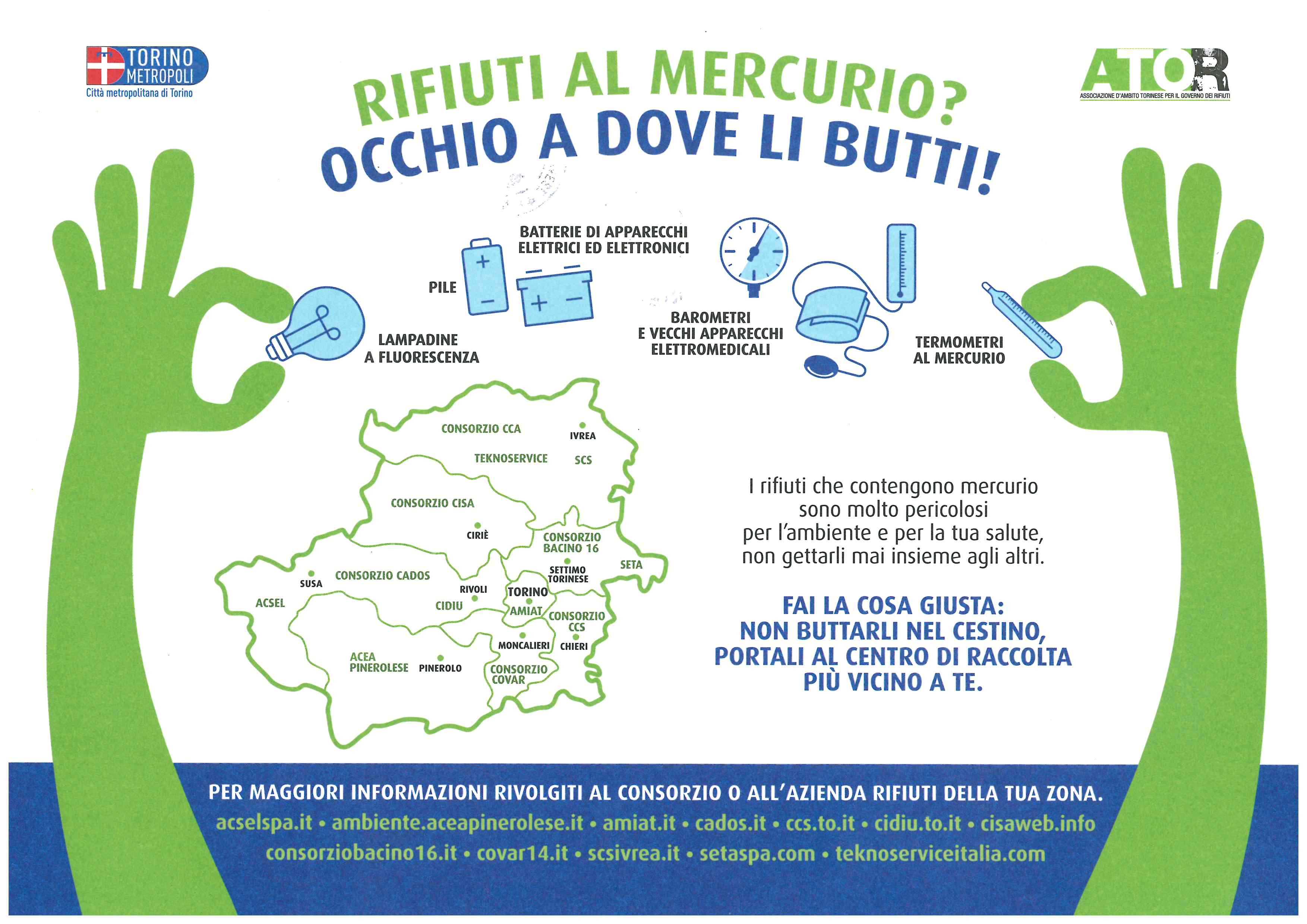 I rifiuti contenenti mercurio, prodotti esclusivamente da utenze domestiche sono considerati RIFIUTI URBANI PERICOLOSI per l'ambiente e la salute degli esseri umani, per questo motivo devono essere smaltiti separatamente